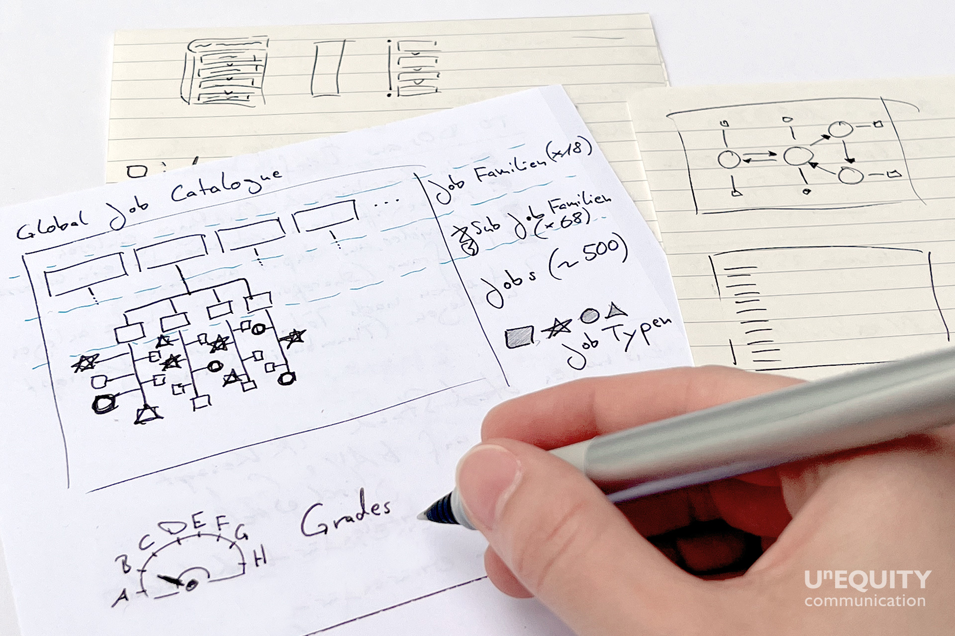 In the preparation of our communication, we paid special attention to ensure that the companies to be integrated in the future speak a common language and develop a uniform understanding of the new job architecture, grading, and the connections to total rewards. In this way, we want to ensure that all participants feel included and can easily find their way around the new framework.